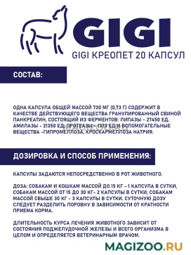 Информация о составе и ингредиентах, цветовом решении, технических и иных характеристиках, стране-изготовителе, внешнем виде и комплекте поставки товара носит справочный характер и основана на последних доступных к моменту публикации сведениях. Доставка данного товара осуществляется во все регионы РФ.Латвийское предприятие GIGI создано в 1996 году. В 2005 году на базе Института биологии Латвийского Университета начато производство кормовых добавок и ветеринарных препаратов для мелких домашних животных.