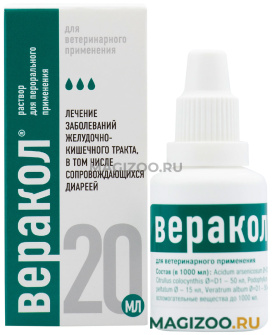 Ветеринар прописал веракол моей собаке, когда у той было легкое отравление, из всех симптомов нас беспокоил жидкий стул и потеря аппетита. Применяли курсом в 7 дней. Аппетит и стул восстановились достаточно быстро
