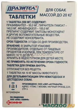 Антигельминтный препарат для собак мелких и средних пород весом до 20 кг в форме таблеток.