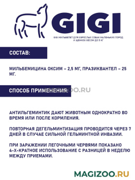 Информация о составе и ингредиентах, цветовом решении, технических и иных характеристиках, стране-изготовителе, внешнем виде и комплекте поставки товара носит справочный характер и основана на последних доступных к моменту публикации сведениях. Доставка данного товара осуществляется во все регионы РФ.Латвийское предприятие GIGI создано в 1996 году. В 2005 году на базе Института биологии Латвийского Университета начато производство кормовых добавок и ветеринарных препаратов для мелких домашних животных.