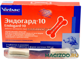 Эндогард 10 (на одну таблетку 0,9 г): фебантел 150 мг, пирантел памоат 144 мг, празиквантел 50 мг, ивермектин 0,06 мг, вспомогательные компоненты до 900 мг.