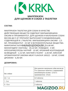 Торговое наименование лекарственного препарата: Милпразон таблетки для собак (Milprazon® tablets for dogs).