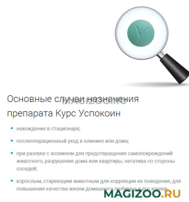 Курс Успокоин – успокоительный препарат для решения длительных поведенческих нарушений домашних животных.