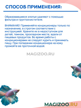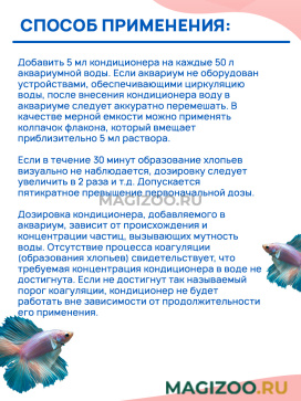 Кондиционер не изменяет pH и другие параметры воды. В рекомендуемой концентрации он безопасен для рыб, растений и других гидробионтов, содержащихся в домашних аквариумах.