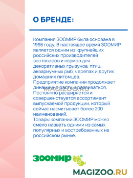 Товары компании ЗООМИР можно смело назвать одними из самых популярных и востребованных на российском рынке. Покупателей привлекает, прежде всего, то, что сравнительно не дорогие корма по качеству не уступают иностранным продуктам.