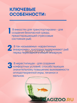 • В емкостях для транспортировки – для создания безопасной среды, предотвращающей стрессовые состояния рыб;