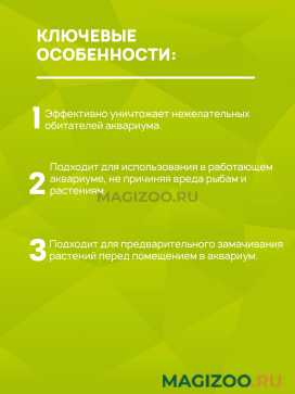 - Эффективно уничтожает нежелательных обитателей аквариума.