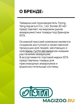 В ассортименте торговой марки ISTA представлены товары для пресноводных аквариумов и водоочистительные системы.