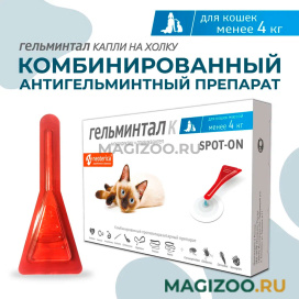 Гельминтал spot-on - новое поколение антигельминтиков для наружного применения. Предназначен для взрослых кошек весом до 4 кг.