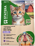 Сбалансированный корм STATERA для котят с индейкой — это источник легкоусвояемого белка, который способствует формированию крепких мышц и тканей, необходимых для здорового роста котёнка.