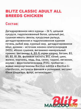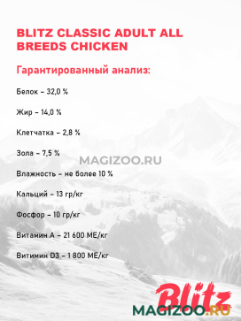 Информация о составе и ингредиентах, цветовом решении, технических и иных характеристиках, стране-изготовителе, внешнем виде и комплекте поставки товара носит справочный характер и основана на последних доступных к моменту публикации сведениях. Доставка данного товара осуществляется во все регионы РФ.BLITZ соответствует по своему качеству зарубежным кормам суперпремиум-класса.