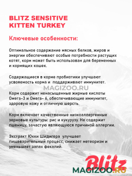 Информация о составе и ингредиентах, цветовом решении, технических и иных характеристиках, стране-изготовителе, внешнем виде и комплекте поставки товара носит справочный характер и основана на последних доступных к моменту публикации сведениях. Доставка данного товара осуществляется во все регионы РФ.BLITZ соответствует по своему качеству зарубежным кормам суперпремиум-класса.