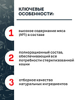 Эти богатые мясом корма не содержат ингредиенты, часто используемые в традиционных кормах, чтобы избежать пищевой непереносимости или аллергии и полностью удовлетворят биологическую потребность питомцев в мясном питании.