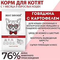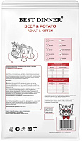 Сухой корм BEST DINNER ADULT & KITTEN BEEF & POTATO для кошек и котят с говядиной и картофелем (0,4 кг)