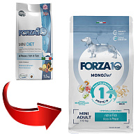 FORZA10 DOG MINI MONODIET с рыбой – это полнорационный диетический корм для взрослых собак мелких пород, созданный научно-исследовательским отделом компании «SANYpet».