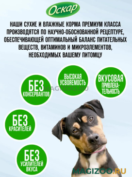Корма ОСКАР не содержат искусственных красителей и консервантов, что особенно важно для обеспечения будущего Вашего питомца.