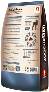 Основные характеристики ЗООГУРМАН SENSITIVE для взрослых собак средних и крупных пород склонных к аллергии с ягненком и рисом: