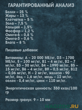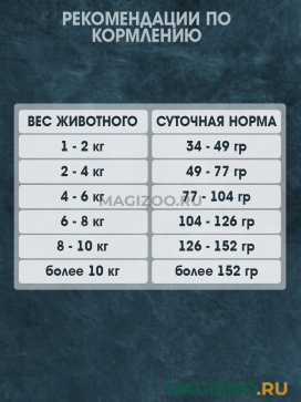 Состав разработан совместно с ветиринаром-нутрициологом таким образом, что он максимально приближен к натуральной пище и может использоваться в профилактических целях для питомца.