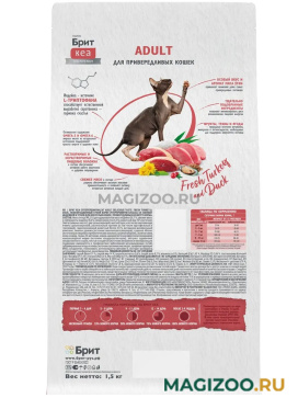 Полнорационный сухой корм суперпремиум класса с индейкой и уткой для взрослых кошек, привередливых ко вкусу корма.