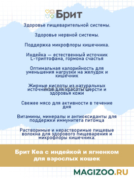 Информация о составе и ингредиентах, цветовом решении, технических и иных характеристиках, стране-изготовителе, внешнем виде и комплекте поставки товара носит справочный характер и основана на последних доступных к моменту публикации сведениях. Доставка данного товара осуществляется во все регионы РФ.Здоровье питомца является главным принципом компании Brit-VAFO PRAHA. Корма под брендом BRIT производятся исключительно из натуральных и легко усваиваемых ингредиентов. В составе продукции нет сои и ГМО.