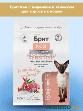 Полнорационный сухой корм суперпремиум класса с индейкой и ягненком для взрослых кошек. Чувствительное пищеварение.
