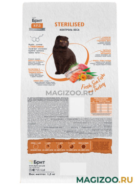 Полнорационный сухой корм суперпремиум класса с морской рыбой и индейкой для стерилизованных кошек. Контроль веса.