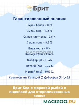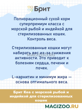 Информация о составе и ингредиентах, цветовом решении, технических и иных характеристиках, стране-изготовителе, внешнем виде и комплекте поставки товара носит справочный характер и основана на последних доступных к моменту публикации сведениях. Доставка данного товара осуществляется во все регионы РФ.Здоровье питомца является главным принципом компании Brit-VAFO PRAHA. Корма под брендом BRIT производятся исключительно из натуральных и легко усваиваемых ингредиентов. В составе продукции нет сои и ГМО.