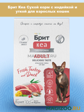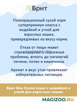 Полнорационный сухой корм суперпремиум класса с индейкой и уткой для взрослых кошек, привередливых ко вкусу корма.
