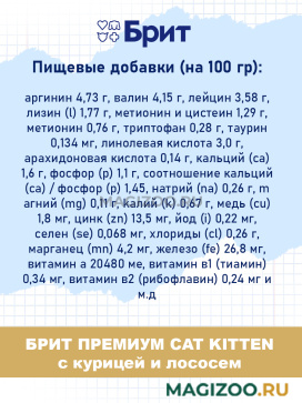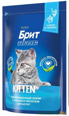 Довольно экономичный, сбалансированный и полезный корм. Купили Брит Премиум со вкусом курицы - котята едят хорошо, хрустят и укрепляют зубки. Помимо курицы в составе есть ещё и лосось, что является плюсом.
