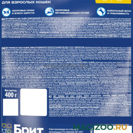 Рекомендации по кормлению: Обеспечьте животному постоянный и открытый доступ к свежей воде. Следует придерживаться рекомендаций по дозировке корма, указанным на упаковке в таблице кормления. Начиная кормление кошки новым кормом, увеличивайте его количество постепенно, в течение нескольких дней. Гранулы корма в форме рыбки, размер гранул 3-4 мм. Страна-производитель: Россия. Информация о составе и ингредиентах, цветовом решении, технических и иных характеристиках, стране-изготовителе, внешнем виде и комплекте поставки товара носит справочный характер и основана на последних доступных к моменту публикации сведениях. Доставка данного товара осуществляется во все регионы РФ.Здоровье питомца является главным принципом компании Brit-VAFO PRAHA. Корма под брендом BRIT производятся исключительно из натуральных и легко усваиваемых ингредиентов. В составе продукции нет сои и ГМО.