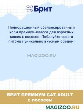 Моей сибирской кошечке очень нравиться лакомиться сухим кормом BRIT PREMIUM. Она уж точно знает, что здесь пахнет большим количеством рыбки. CAT ADULT SALMON предназначен взрослым кошечкам, которые любят лосось. У бренда доступные цены и большой выбор на любой кошачий вкус.