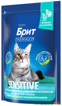 У моего кота проблемы с пищеварением уже давно. Решила поменять производителя корма. Купила корм Brit Premium cat sensitive для котов с чувствительным пищеварением. Могу сказать, что он очень качественный по составу. Кот его ест с удовольствием. Выбрала корм с индейкой и ягненком пачку 400 грамм. Пока всё устраивает. Буду и дальше покупать.