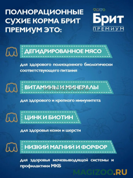 Информация о составе и ингредиентах, цветовом решении, технических и иных характеристиках, стране-изготовителе, внешнем виде и комплекте поставки товара носит справочный характер и основана на последних доступных к моменту публикации сведениях. Доставка данного товара осуществляется во все регионы РФ.Здоровье питомца является главным принципом компании Brit-VAFO PRAHA. Корма под брендом BRIT производятся исключительно из натуральных и легко усваиваемых ингредиентов. В составе продукции нет сои и ГМО.
