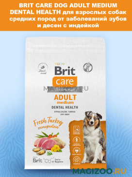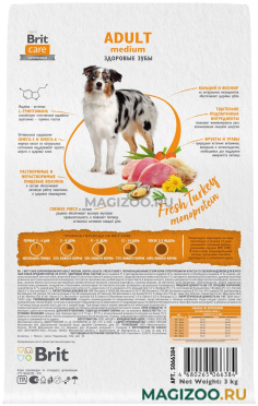 Полнорационный сухой корм суперпремиум класса с индейкой для взрослых собак средних пород. Здоровые зубы.