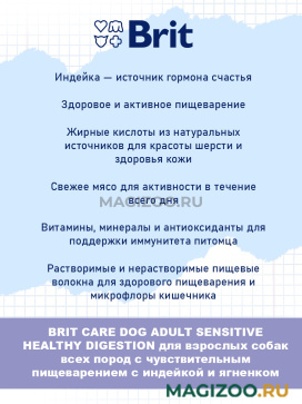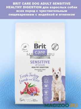Полнорационный сухой корм суперпремиум класса с индейкой, ягненком и рисом для взрослых собак всех пород. Чувствительное пищеварение.