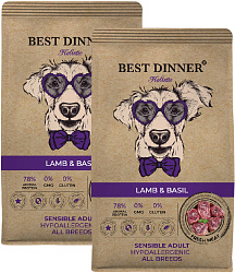 Полнорационный гипоаллергенный сухой корм BEST DINNER HOLISTIC DOG ADULT MEDIUM & MAXI SENSIBLE для собак средних и крупных пород с чувствительным пищеварением с ягненком и базиликом.