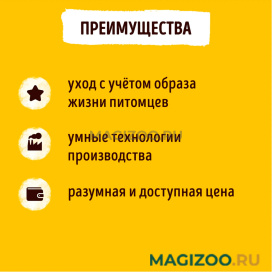 Полнорационный и сбалансированный корм с тщательно подобранным составом и необходимым комплексом питательных веществ поможет сохранить здоровье и активность Вашего питомца для достижения великих целей!