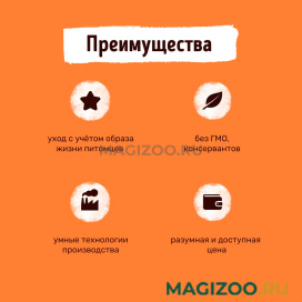 Полнорационный и сбалансированный корм с тщательно подобранным составом и необходимым комплексом питательных веществ поможет сохранить здоровье и активность Вашего питомца для достижения великих целей!