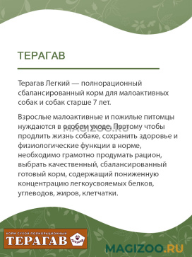 Терагав Легкий — полнорационный сбалансированный корм для малоактивных собак и собак старше 7 лет.