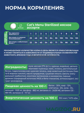 Подарите Вашей кошке здоровье и радость жизни с новым полнорационным сухим кормом для кастрированных котов и стерилизованных кошек Cat’s menu Sterilized мясное ассорти.