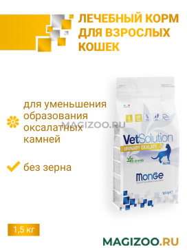 Лечебный корм Monge (Монж/Монже) VetSolution Cat Urinary Oxalate Уринари Оксалат для кошек при заболеваниях мочеполовой системы, таких как идиопатический цистит (синдром болезненного мочевого пузыря, интерстициальный цистит) и оксалатное течение мочекаменной болезни (оксалатная кристаллурия и уролитиаз) 1,5 кг.