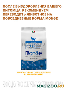 Monge (Монж/Монже) VetSolution URINARY STRUVITE — полнорационный сухой диетический корм из лосося для кошек «URINARY STRUVITE» для растворения струвитных камней и профилактики их образования у кошек. Корм предназначен для лечебного питания кошек с урологическим синдромом. Содержит концентрат сока дыни для нейтрализации свободных радикалов, клюкву для поддержки функции мочевыделительной системы, ксилоолигосахариды (XOS) для защиты кишечной микробиоты, подкисляющие мочу вещества и низкий уровень магния.