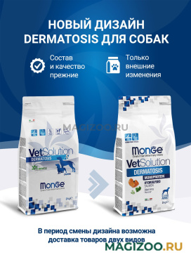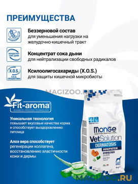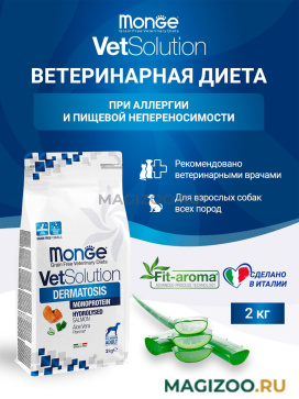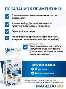 Лечебный корм Monge VetSolution Dog Dermatosis Дерматозис для собак при заболеваниях кожи, таких как дерматит, хронический зуд, заболеваниях кожи, сопровождающиеся воспалением, пищевая аллергия и пищевая непереносимость 2 кг