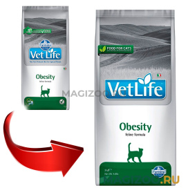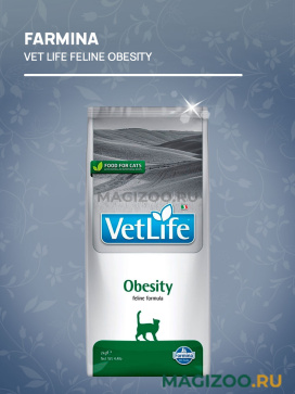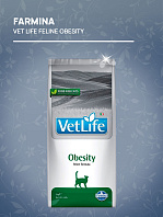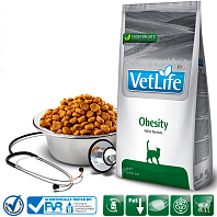 FARMINA VET LIFE FELINE OBESITY — полнорационный диетический сухой корм для взрослых кошек, разработанный для снижения излишнего веса.