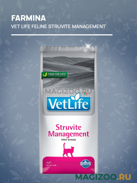 Farmina Vet Life Struvite Management - полнорационный диетический корм для кошек для снижения рецидивов струвитного уролитиаза и при заболеваниях нижних мочевых путей у кошек.