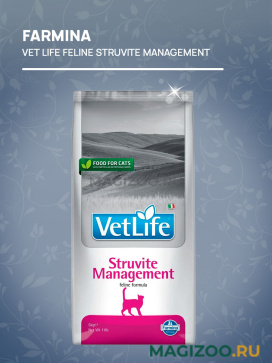 Farmina Vet Life Struvite Management - полнорационный диетический корм для кошек для снижения рецидивов струвитного уролитиаза и при заболеваниях нижних мочевых путей у кошек.