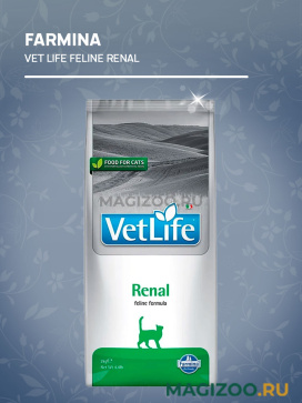 FARMINA VET LIFE FELINE RENAL – рацион с низким содержанием белка и фосфора, которое снижает симптомы почечной недостаточности высокого качества и улучшают состояние животного.