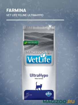 FARMINA VET LIFE FELINE ULTRAHYPO — полнорационный сбалансированный сухой корм для взрослых кошек при неблагоприятной реакции на пищу (пищевая аллергия и/или пищевая непереносимость). Может быть использован в качестве диагностического теста (исключающая диета). Рекомендован в качестве диетотерапии при хронических воспалительных заболеваниях кишечника (IBD), рецидивирующей рвоте.