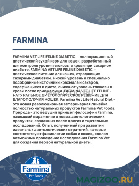 FARMINA VET LIFE FELINE DIABETIC – диетическое питание для кошек, страдающих сахарным диабетом. Низкий уровень и специально подобранные источники крахмала и сахаров, содержащиеся в диете, снижают уровень глюкозы в крови после приема пищи.
