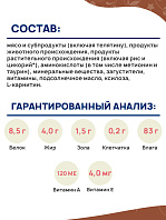 Источник белка: кукурузный глютен, дегидратированное куриное мясо, гидролизат рыбы и куриного белка, рыба, яйца.